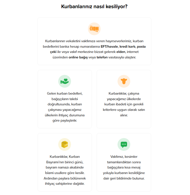 Vakfımız, kesimler tamamlandıktan sonra bağışçılara kısa mesaj yoluyla kurbanın kesildiğine dair geri bildirimde bulunur.